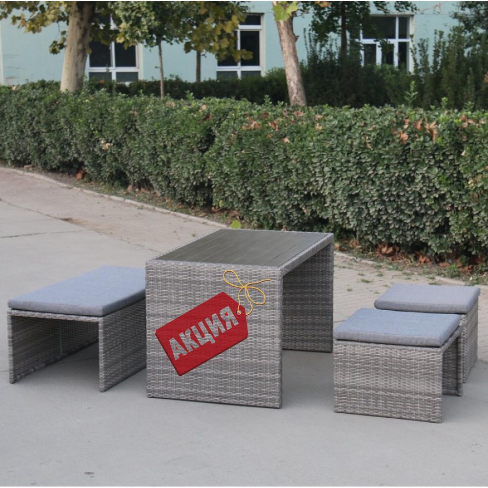 Плетеный диван-трансформер S330G-W78 Grey от бренда Afina. В составе комплекта: диван, который трансформируется в обеденную группу: стол, лавочка и 2 пуфа. Высококачественная лоза из полиротанга серого цвета стойкая к любым атмосферным явлениям. Крепкий стальной каркас с полимерным антивандальным покрытием и отличным качеством сварки. Изделие сплетено вручную нашими мастерами под жестким контролем качества на каждом этапе производства. Лоза максимально приближена по рельефу и текстуре к естественному материалу. Идеально подходит для использования на улице и внутри помещения в любую погоду. Не боится воды, солнца и минусовой температуры. Подушки входят в комплект. Оттенки цвета на фото могут отличаться от представленного образца. Декинг на столешнице светло-коричневого оттенка.