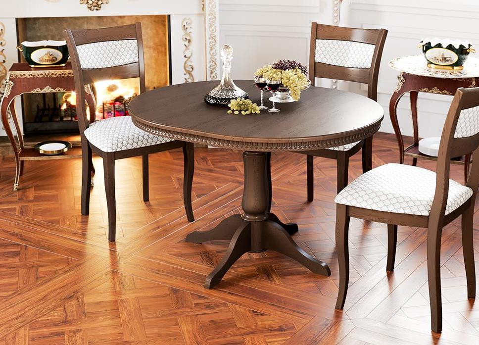 Раскладной стол «Торонто» порадует приверженцев классического стиля своей красотой и долговечностью. Модель имеет овальную форму. Это очень важно для дома, где есть дети – исключены травмы об острые углы.